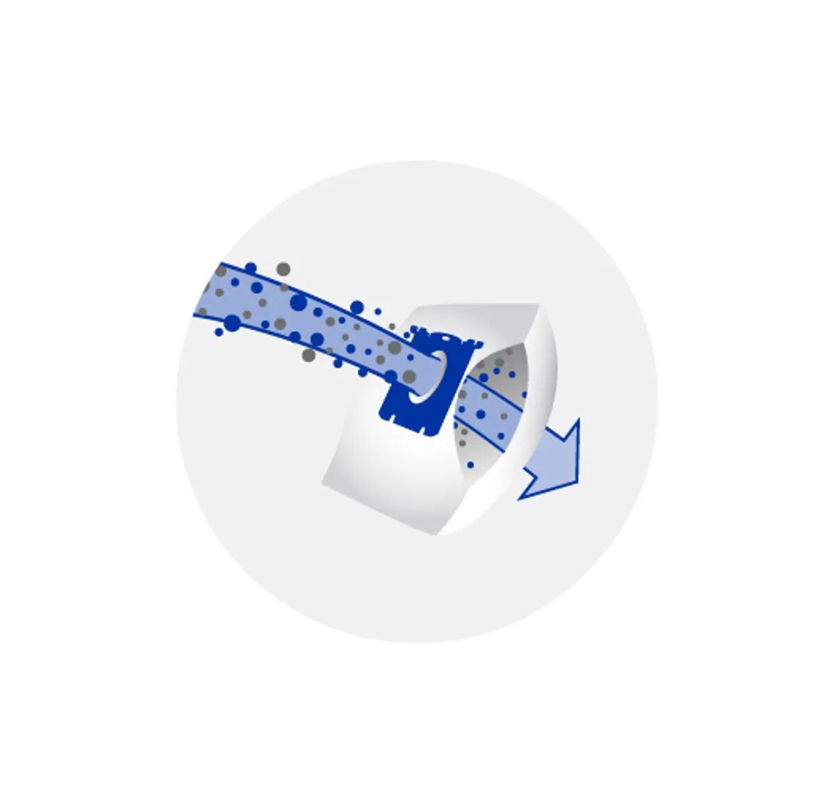 Mulțumită materialului DURAFLOW™ Fresh, mirosurile neplăcute sunt îndepărtate, iar sacul de praf nu prinde miros pentru mai mult timp.